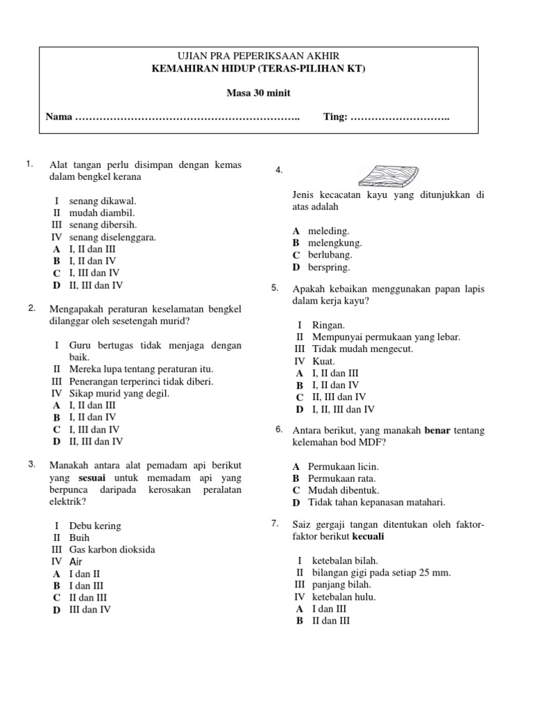 Soalan Kemahiran Hidup Teras Tingkatan1 Pdf